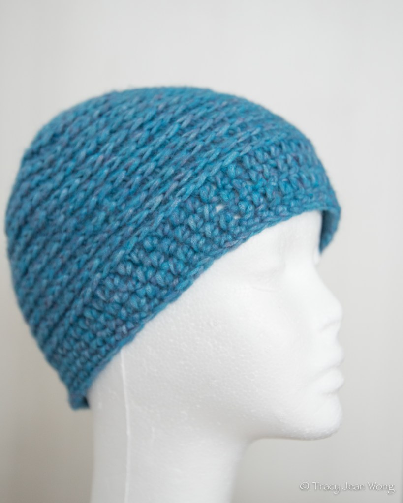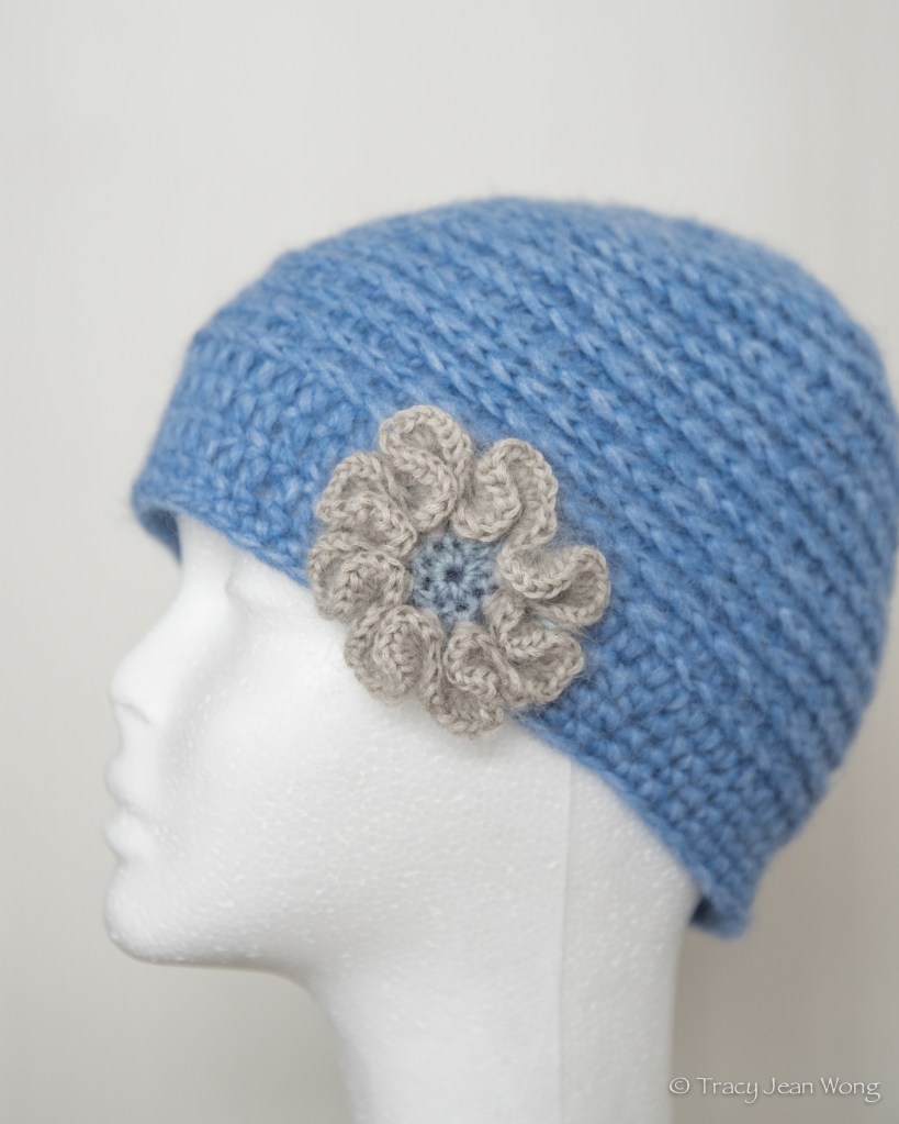 These hats (variations of the Aleway Hat) were crocheted using a blend of silk, merino wool, and nylon. Although the yarn colours were identified simply as “camo” and “greys”, I thought that their colourways might have been more descriptive, since camo reminds me of uniforms on the battlefield and greys ceremonial uniforms.