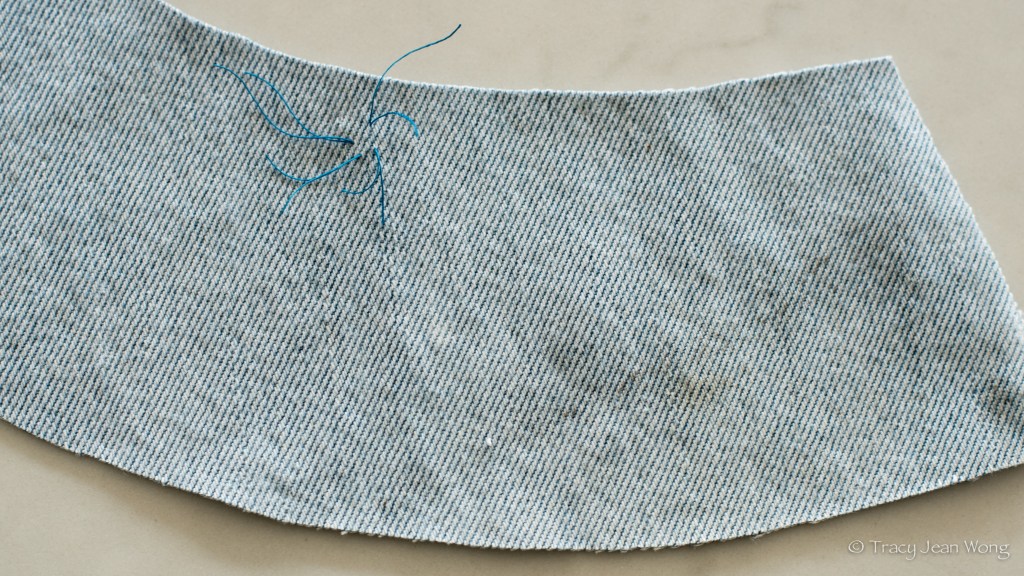 After my last blog post, a friend asked if I wanted to upcycle an old pair of jeans found on the bottom of his pile of work clothes. I asked if he would like me to make him a hat, but he doesn’t wear hats. However, he is a new grandparent and I thought his denim could be the beginning of a baby or toddler’s reversible bucket hat. A memento from grandfather to granddaughter.