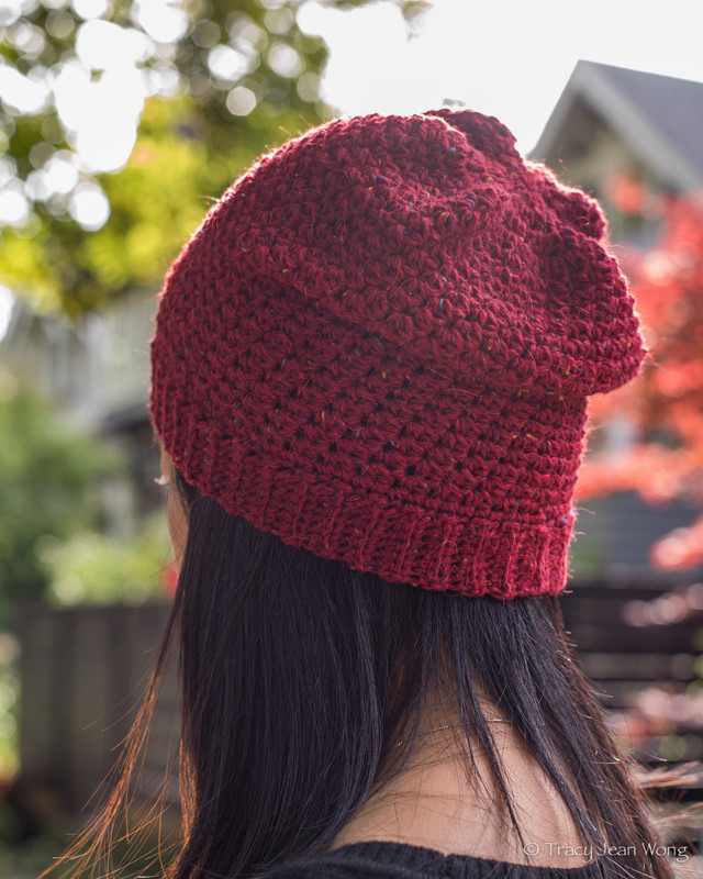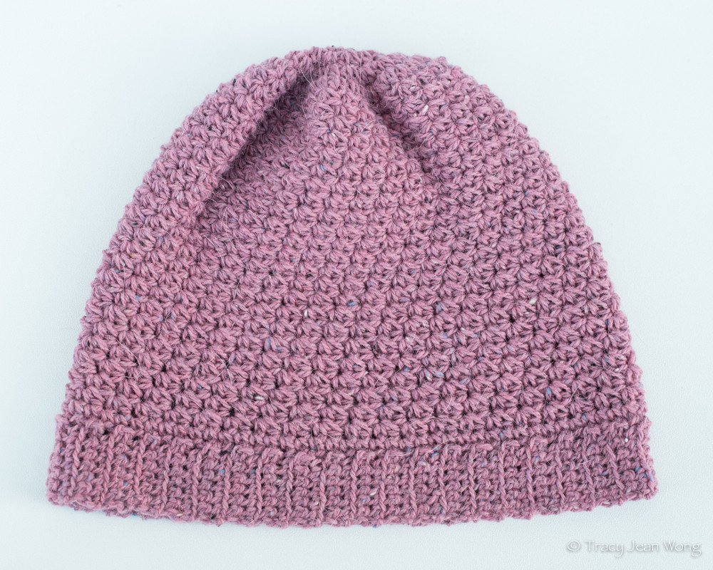 I finished the two slouch hats shown in the photos in a tweed wool blend and was pleased with the vibrant colours and the clearly defined stitches. The method of crocheting the ribbed hat band created a neat knit-like look with good functional stretch.