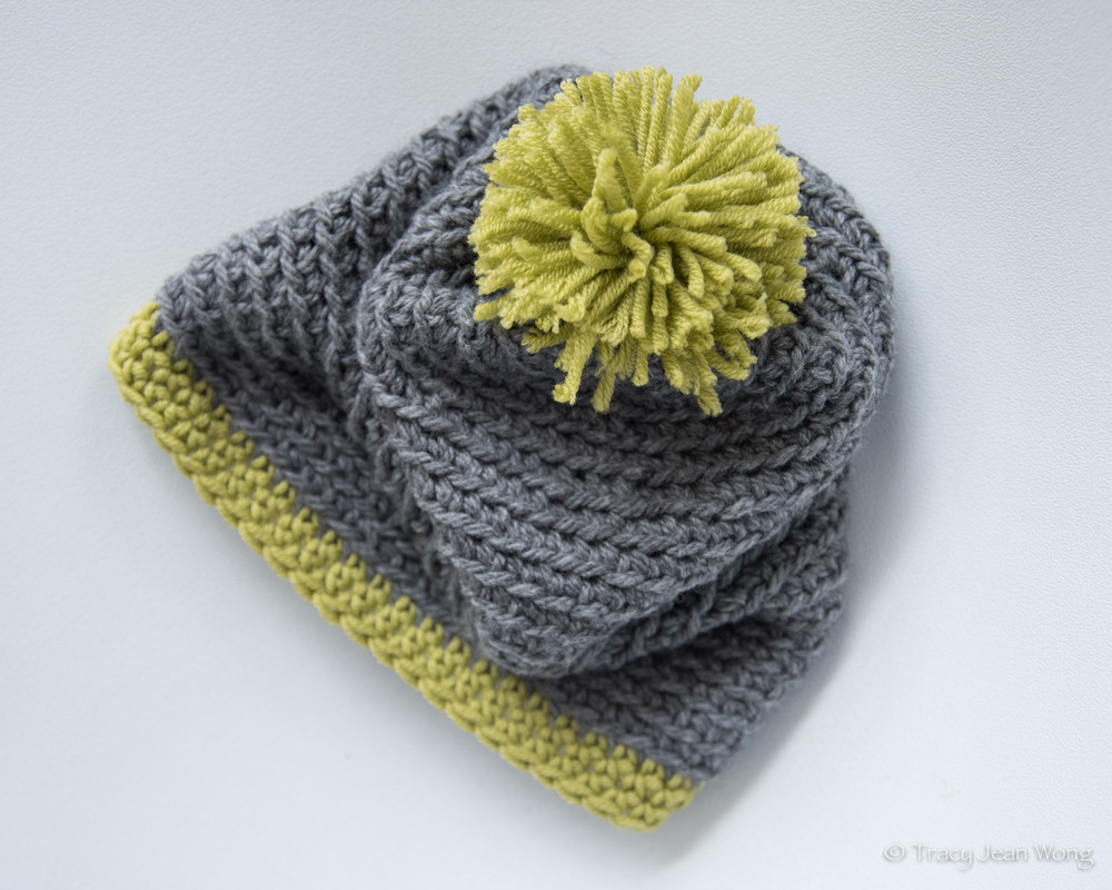 Brickwork Hat, design by The Lavender Chair, Merino WoolBeanie, Superwash Wool and Organic Cotton with Merino Wool trim and pom pom